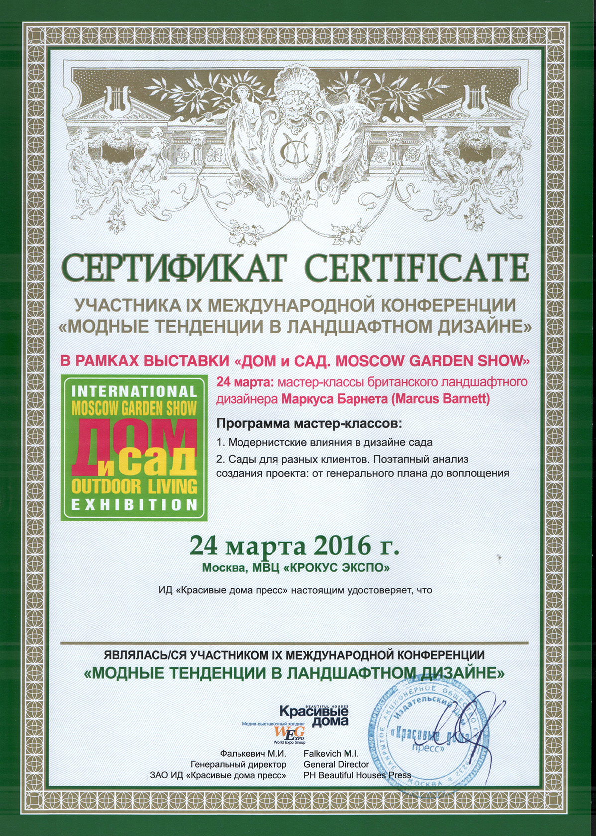 Принимаю постоянное участие в семинарах и конференциях. Являюсь экспертом в различных интернет изданиях и журналах по ландшафтному дизайну.
