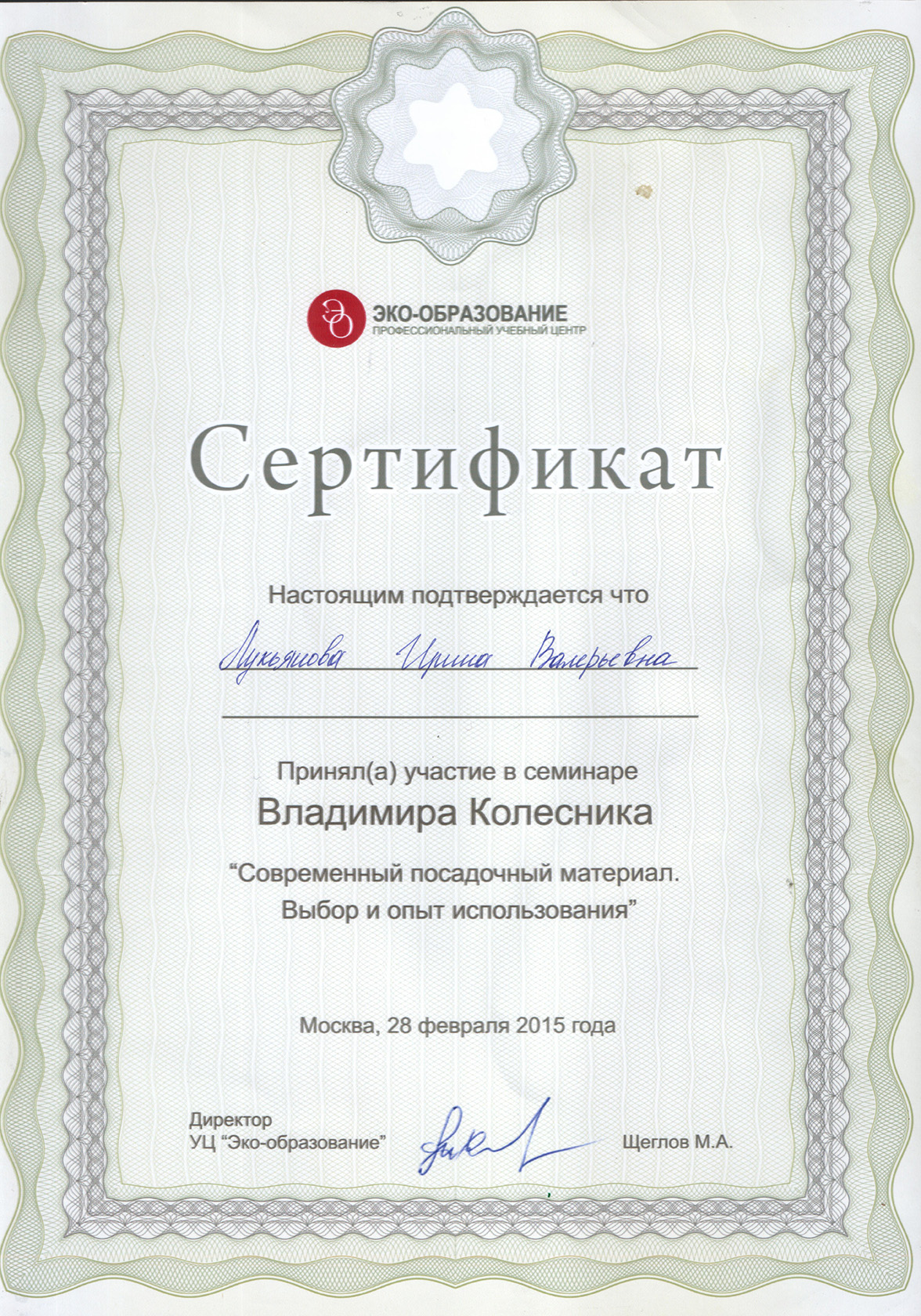 Меня зовут Лукьянова Ирина.